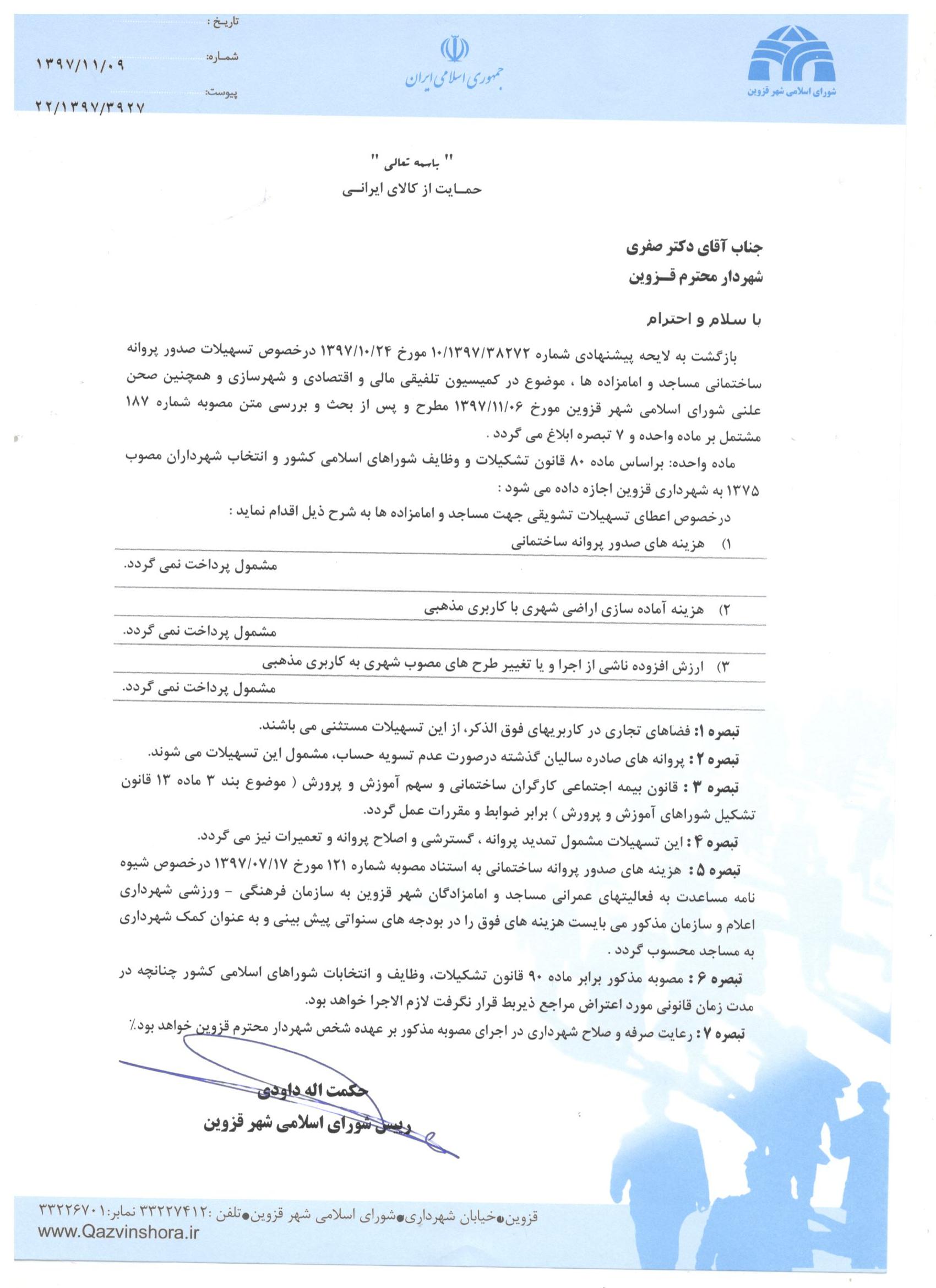 اصلاح مصوبه تسهیلات صدور پروانه ساختمانی مساجد و امزاده ها -